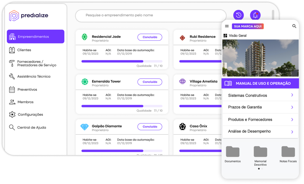 Uma experiência premium que garante excelência no pós-obra e respaldo jurídico total para a sua operação. Manuais interativos personalizados, atendimento ágil e transparente para satisfazer os clientes mais exigentes.