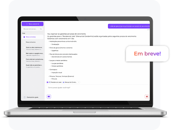 Para a construtora, elimina atendimentos com perguntas repetitivas e confere maior agilidade na busca de informações técnicas acerca dos empreendimentos. Para o proprietário, síndico ou prestador de serviço, entrega autonomia e clareza técnica 24 horas por dia.