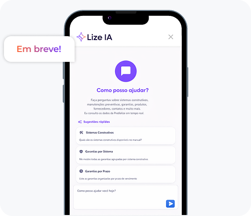 A Lize evoluirá para atuar em todo o ecossistema de gestão pós-obra da Predialize, conectando dados, processos e decisões estratégicas em uma única jornada.
