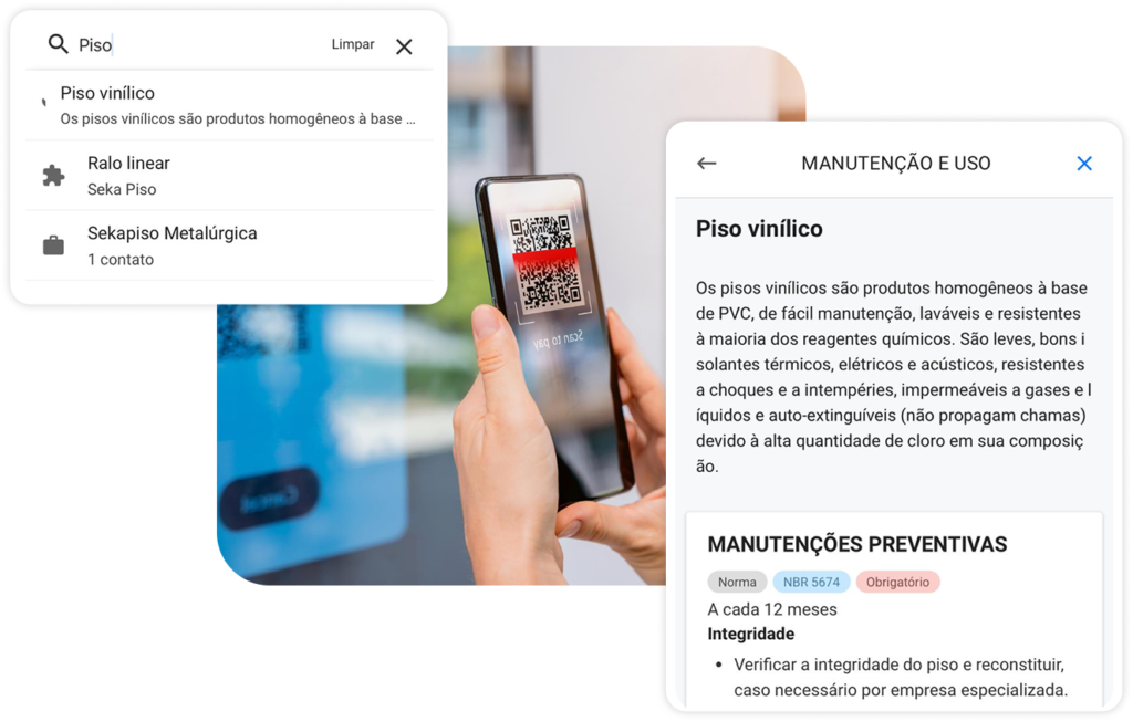 Proprietários, síndicos e fornecedores acessam informações técnicas, orientações de uso e histórico do imóvel na palma da mão, via QR Code, código de acesso ou e-mail.