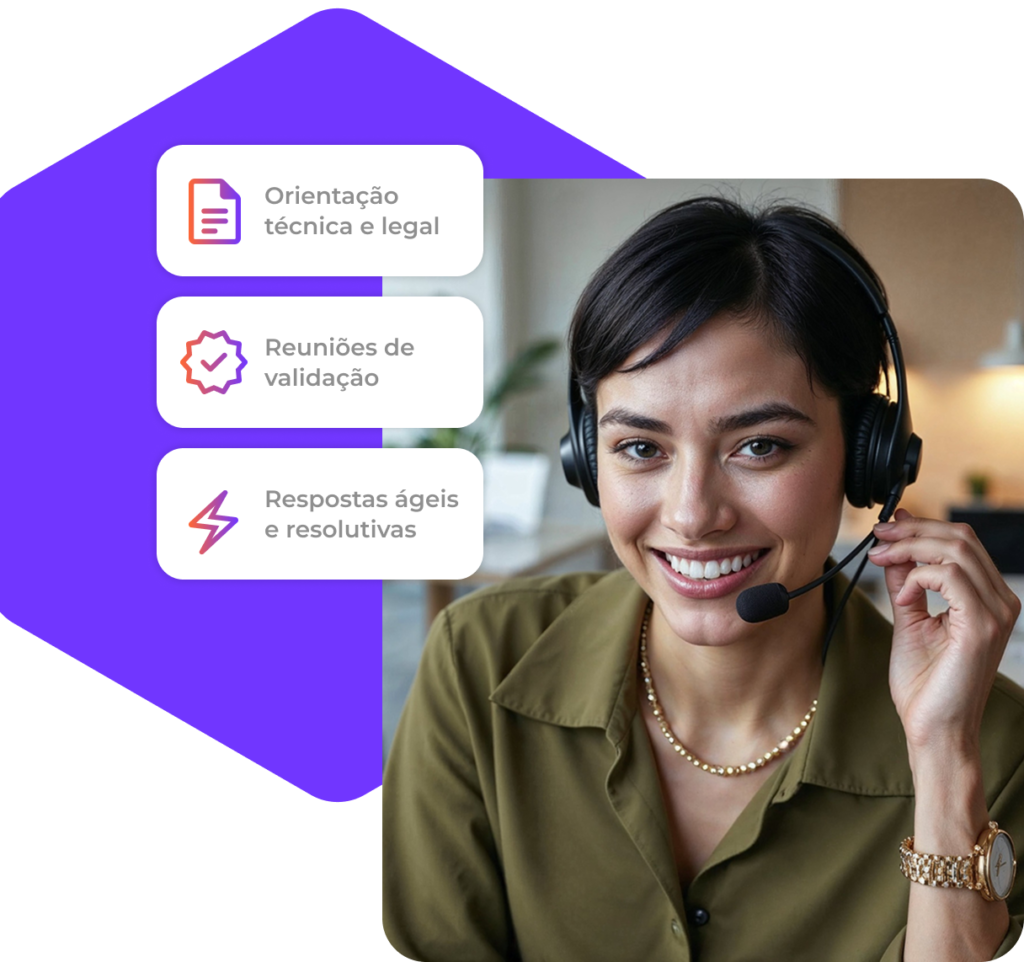 Conte com a assessoria de especialistas que falam a sua língua para transformar complexidade em eficiência operacional. Implementação ágil, conformidade garantida e menos retrabalho, liberando sua equipe para focar em demandas mais estratégicas.