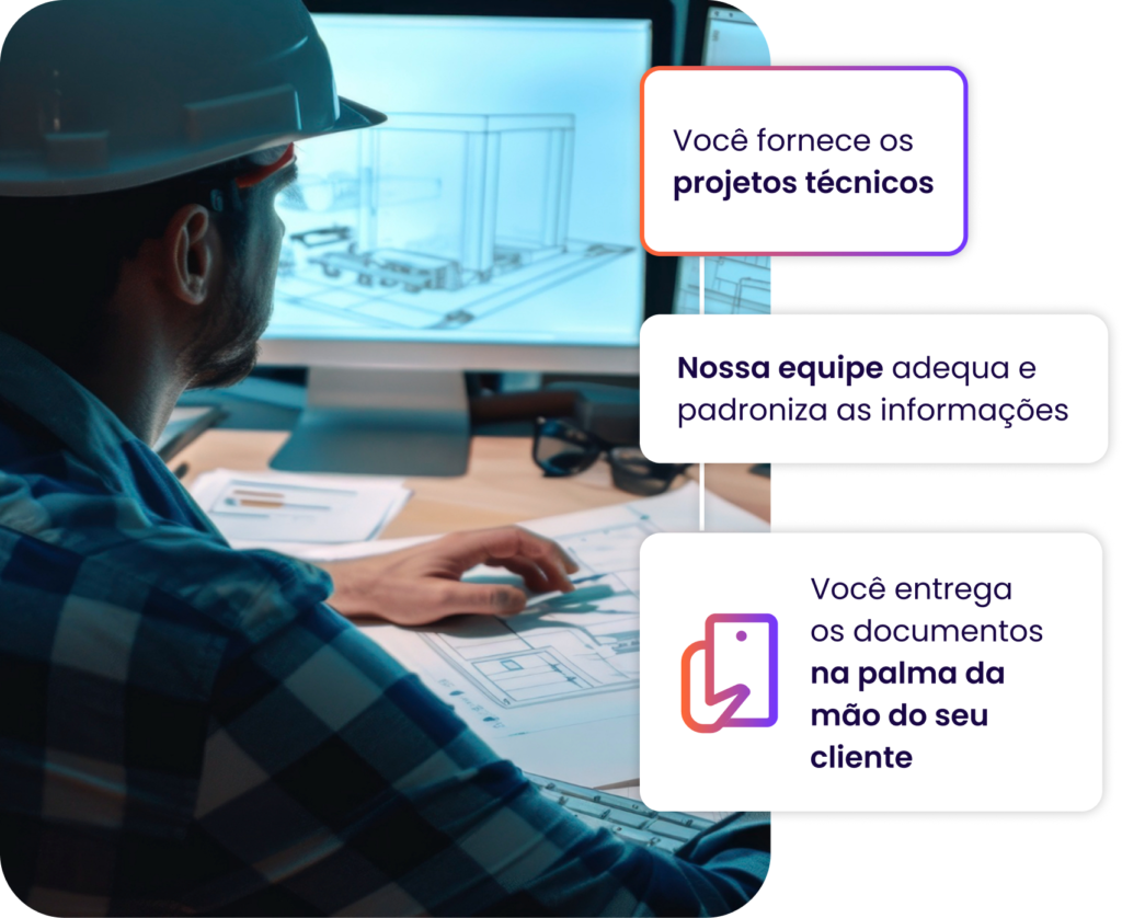 Traduzimos projetos técnicos complexos em documentação acessível que agrega valor ao imóvel e à experiência do cliente. Adequamos todas as plantas (As-Built) e integramos diretamente ao Manual, criando um ecossistema completo de informações técnicas.